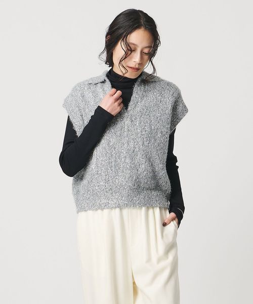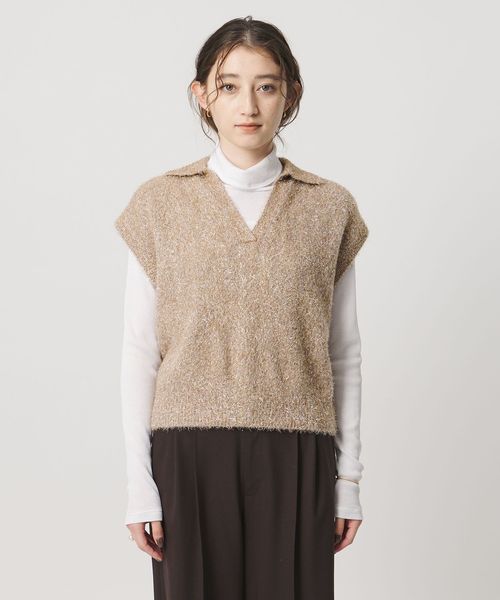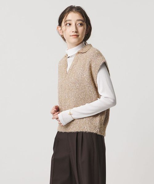 存在感のある華やかなグリッター素材が目を惹くベスト。