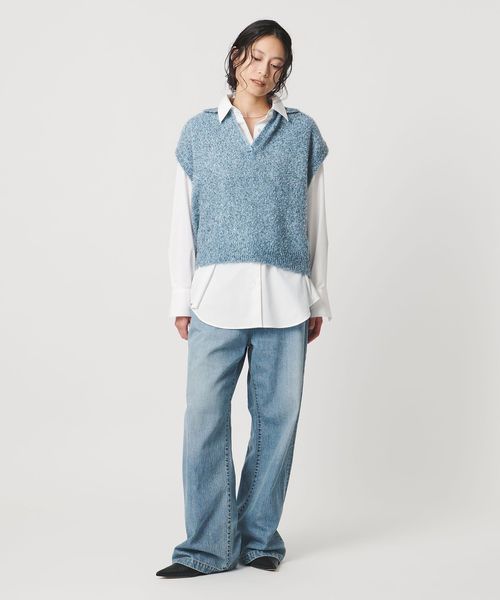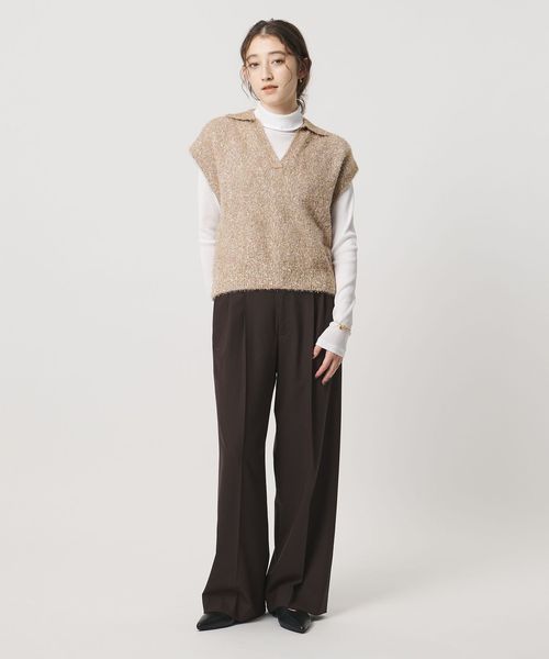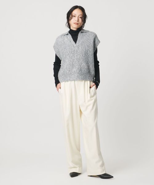 スキッパーデザインの首元は開きすぎず、抜け感のあるスタイリングが楽しめます。