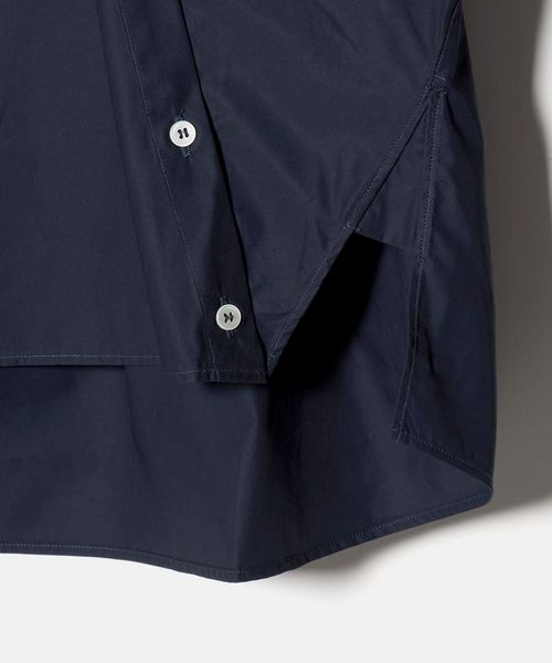 ラップ調の前開きデザインと、前後で異なる着丈が軽やかな抜け感をプラスしてくれる一着。