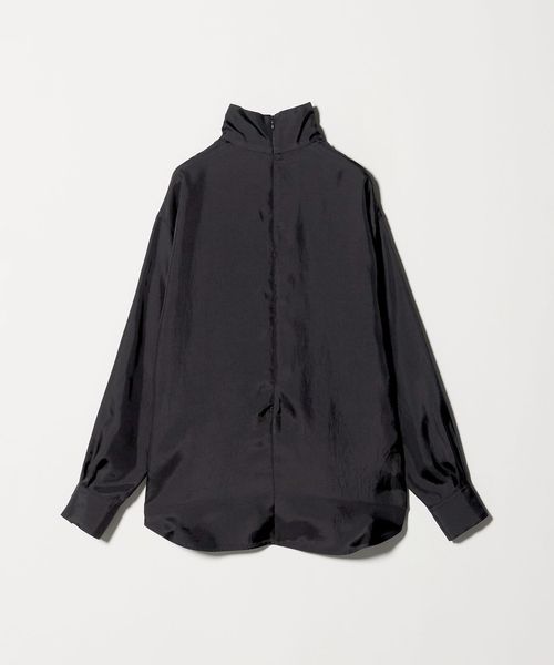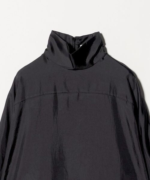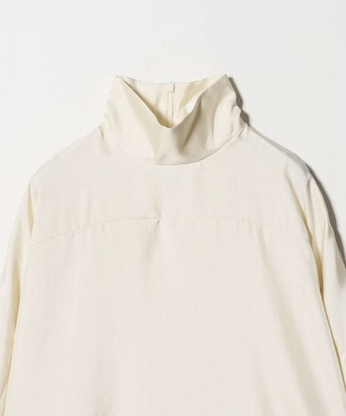 前後で切り替えた肩のパターンが、モダンな雰囲気のハイネックブラウス。
