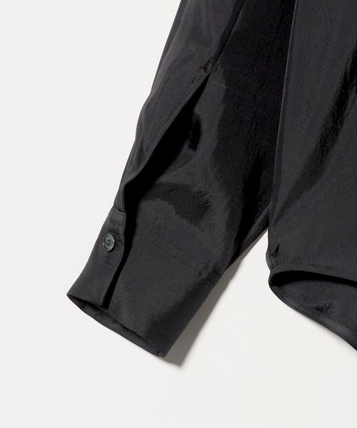 ボリュームを持たせた長めの袖丈とコンパクトなカフス、前後差をつけたラウンドカットの裾がポイントです。