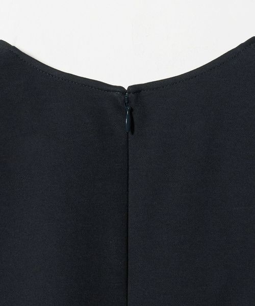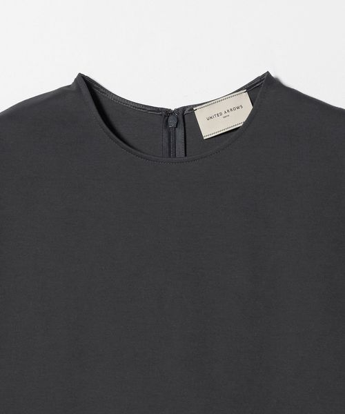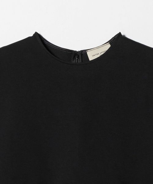 上身頃がジャージーで着心地良く、布帛とのコンビでブラウス見えの華やかさです。