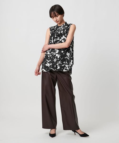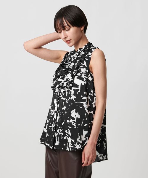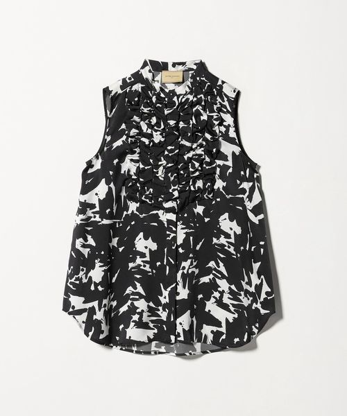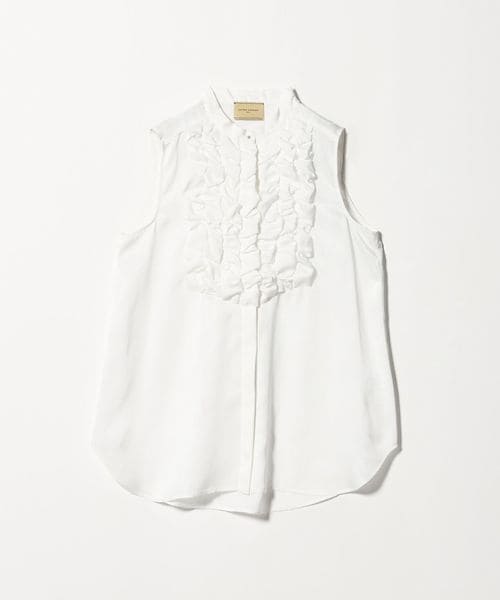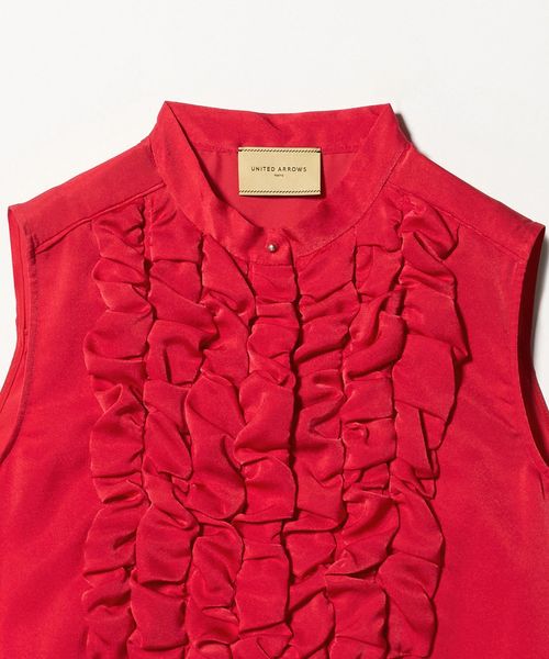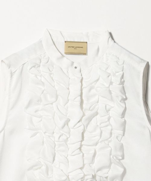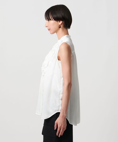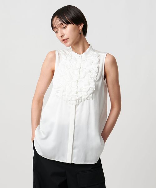 フロントの立体感のあるフリルデザインが特徴のブラウス。