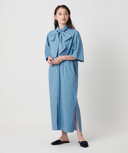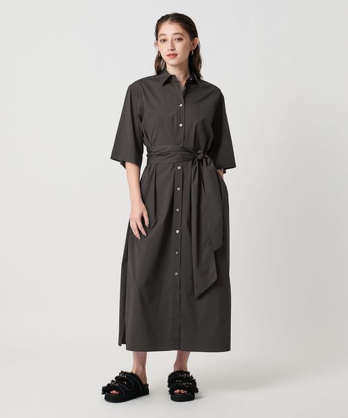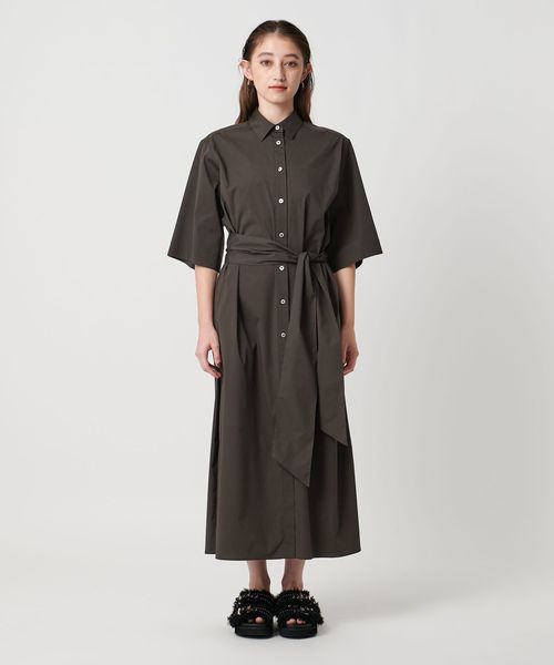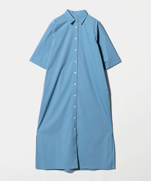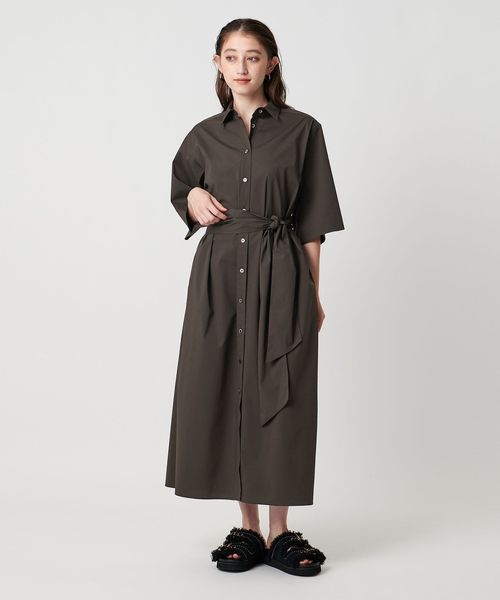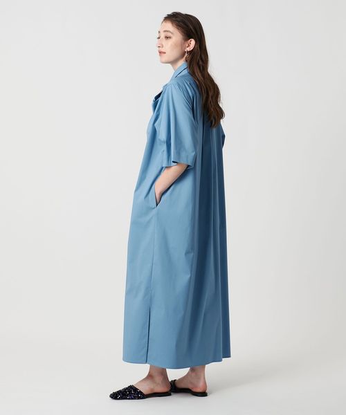 程よくゆとりのあるボックスシルエットがリラックス感のある5分袖のシャツワンピース。