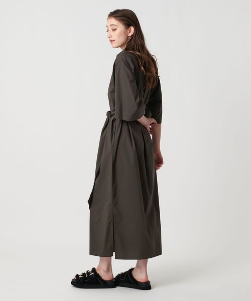 上品な光沢とハリ感のあるワンピースは、一枚でさらっと着ても洗練された印象に。