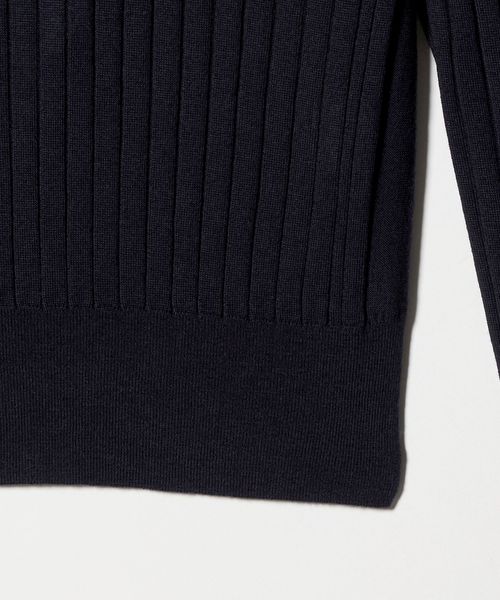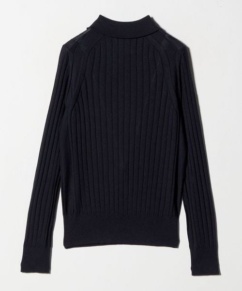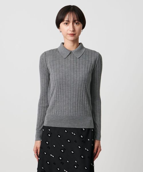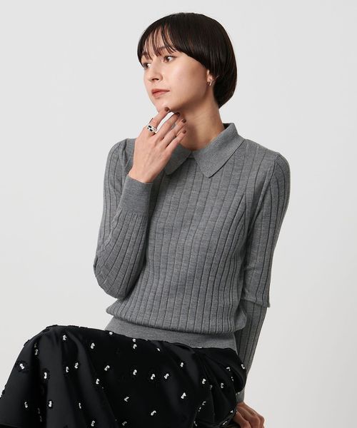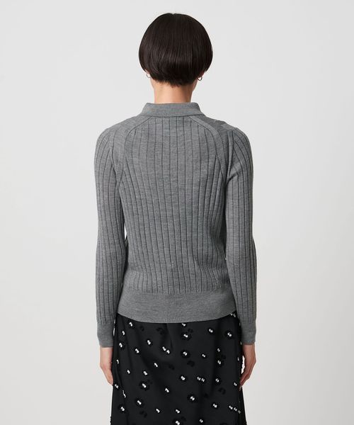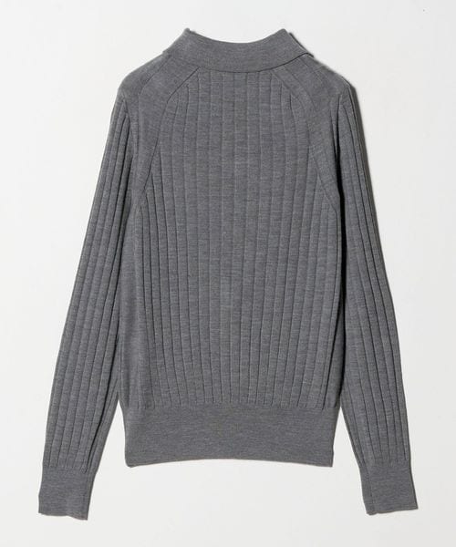18Gワイドリブ編みをフルファッションで丁寧に編みたてた襟付きポロニット。