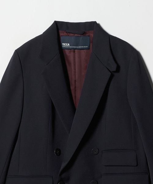 毎シーズン素材を変えて提案されている<TICCA>テーラードジャケットにミニマルな同色ボタン、高級感のあるバーガンディカラーの裏地を取り入れた別注モデルです。