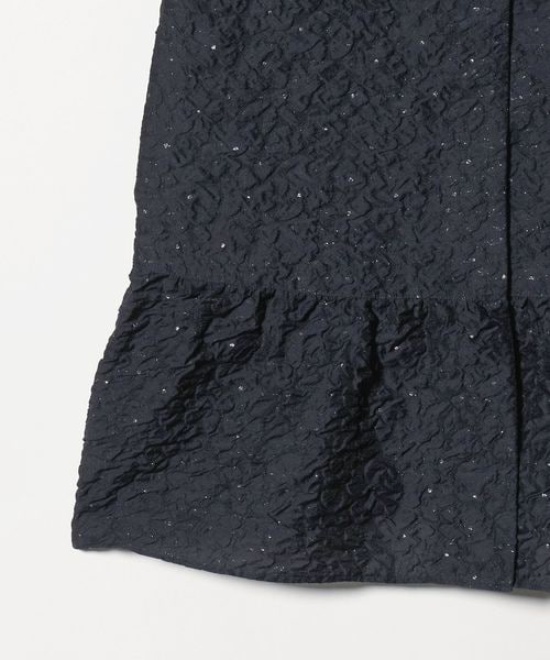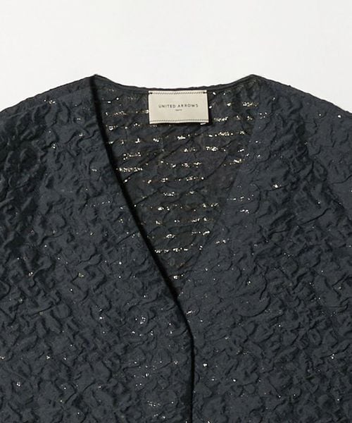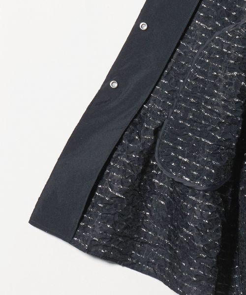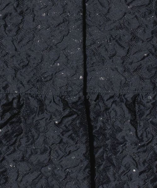 タテ糸にポリエステルとナイロンを二重ビームで整経し、ヨコ糸にはポリエステルブライトとラメ、ナイロンで構成した、ユナイテッドアローズオリジナルのふくれジャガード素材を使用。