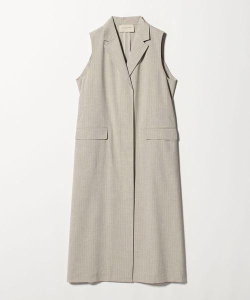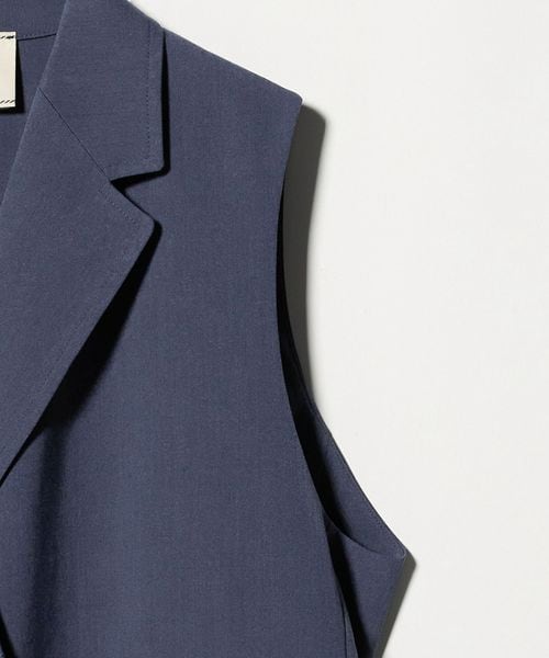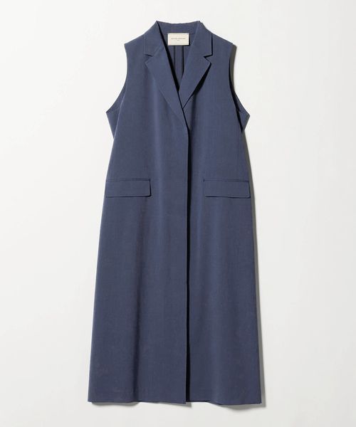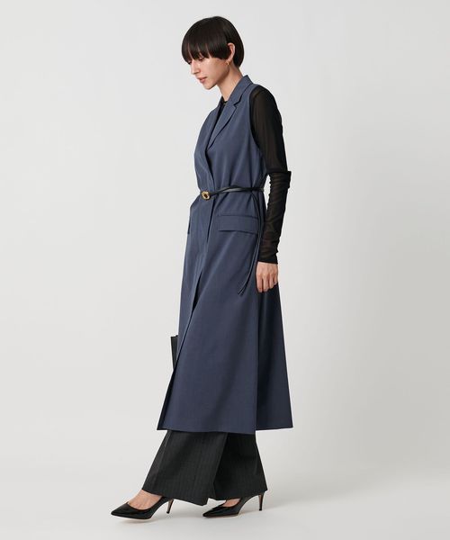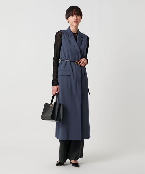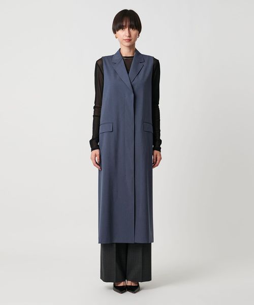同素材のパンツとのセットアップ合わせはもちろん、きれいめなドレスパンツやデニムと合わせたりとロングベストとしてさまざまなボトムスと好相性です。