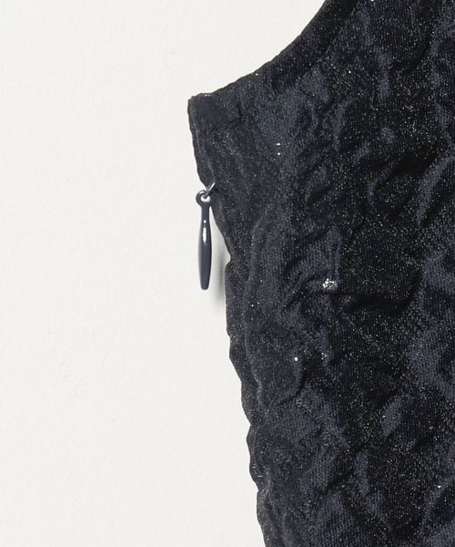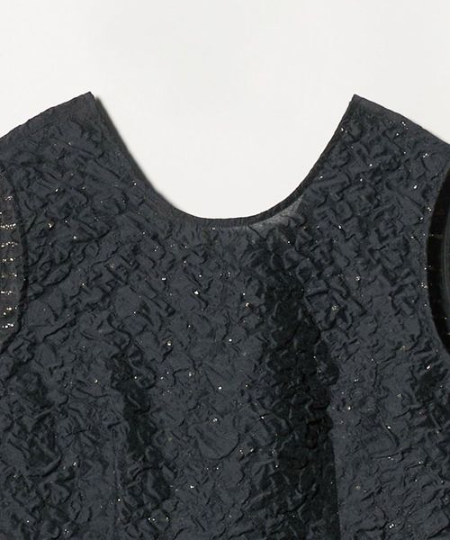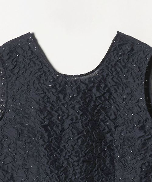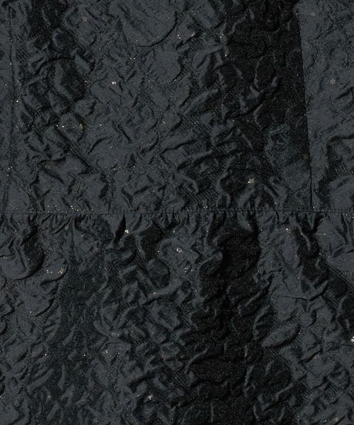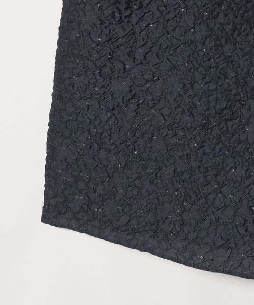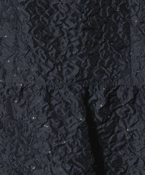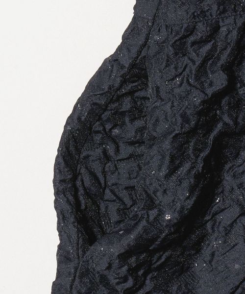 タテ糸にポリエステルとナイロンを二重ビームで整経し、ヨコ糸にはポリエステルブライトとラメ、ナイロンで構成した、ユナイテッドアローズオリジナルのふくれジャガード素材を使用。