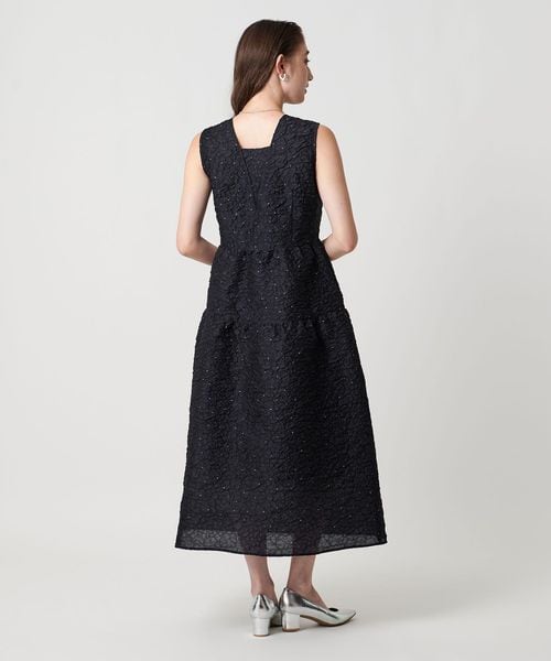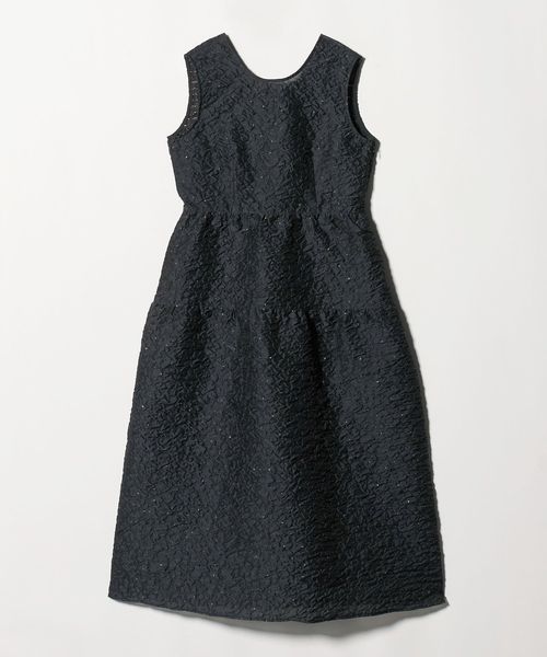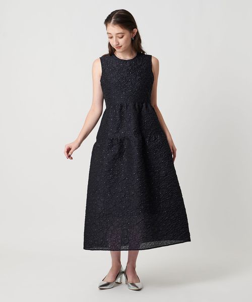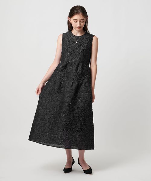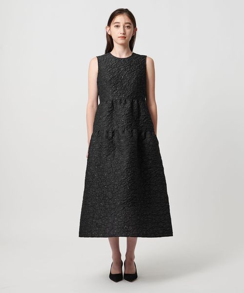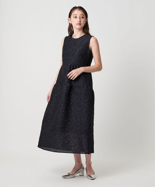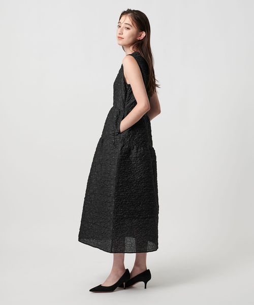 オリジナルのジャガード素材がさりげない華やかさを添えるノースリーブワンピース