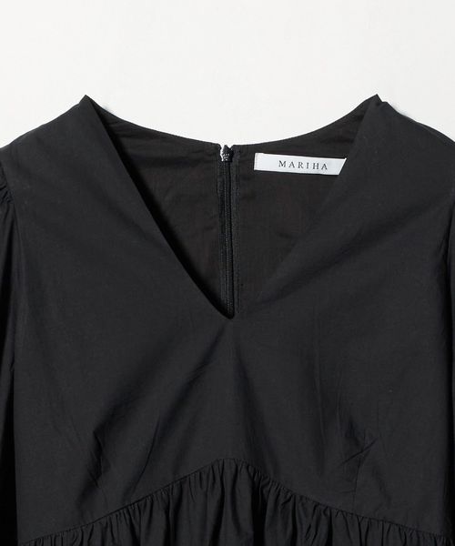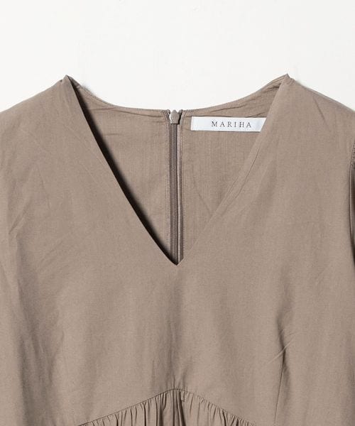 デコルテを美しく見せるVネックと高めの胸元切り替えで、優雅な女性らしさを引き立てます。