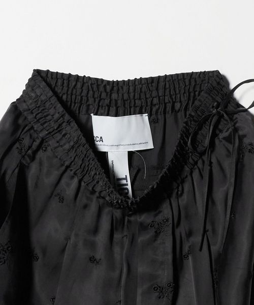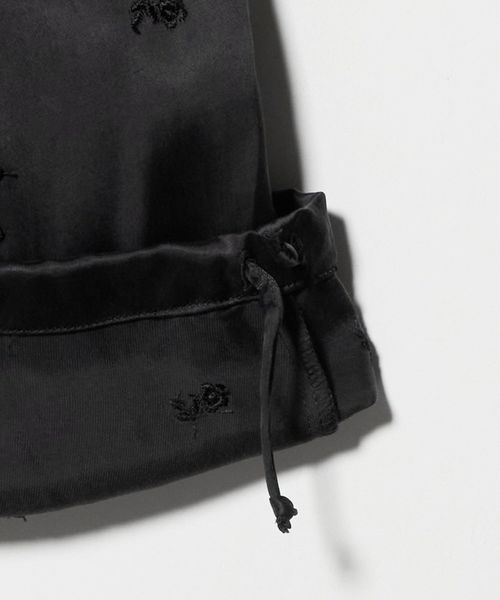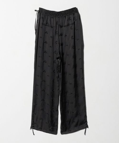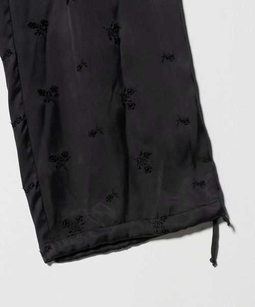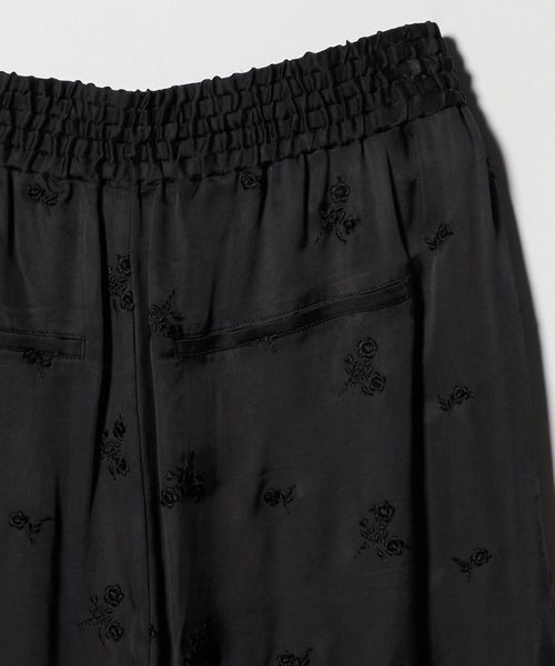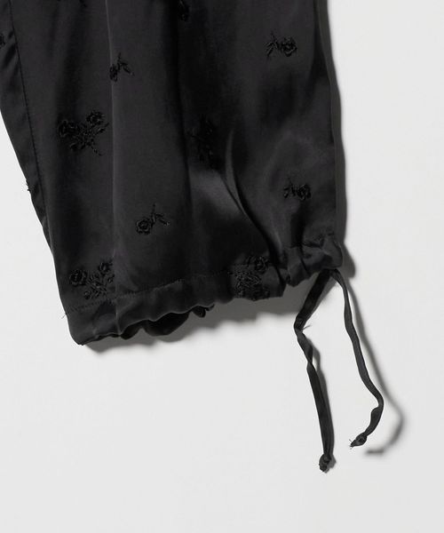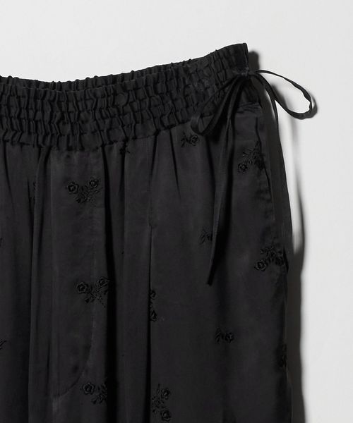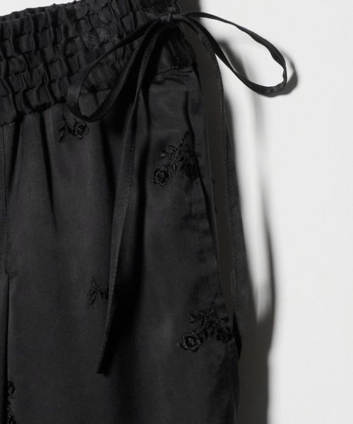 シアーなカールマイヤー素材に花の刺繍を施したパンツ。