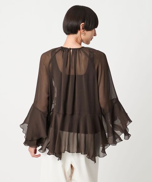 シアー イレギュラー フリル ブラウス ‐ウォッシャブル‐