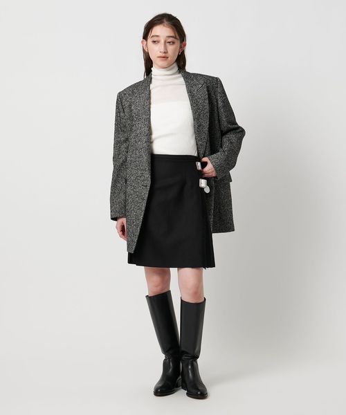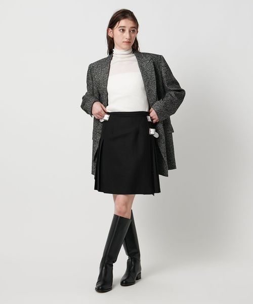 シアーブラウスやタートルニットを合わせて上品にまとめれば、大人っぽい雰囲気に。