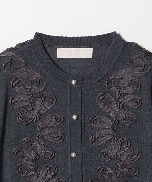 ハンドメイドでサテンコードをほどこしたクチュール感あふれるブラウス風刺繍カーディガン。