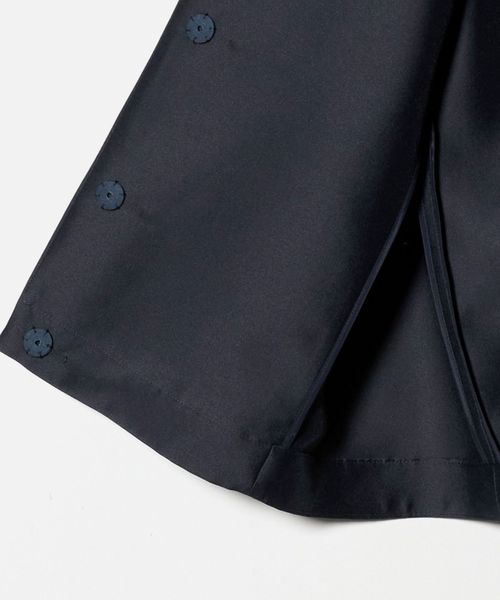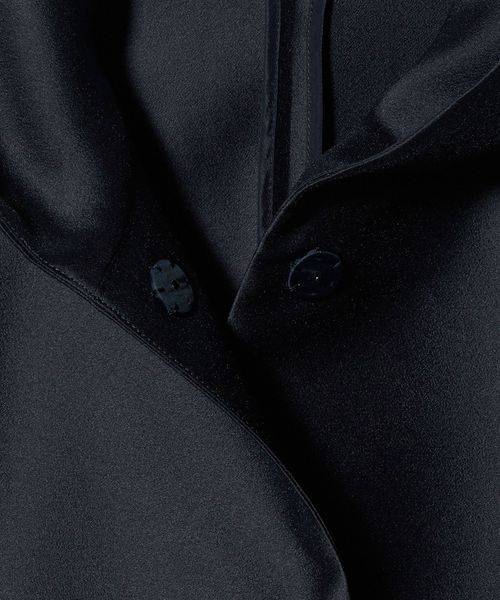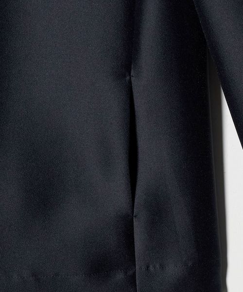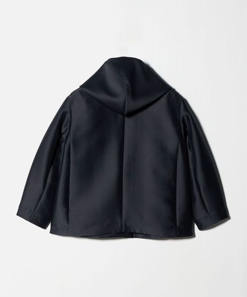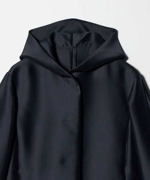 フードのカジュアル感とほどよい光沢のある素材のエレガントさのバランスが素敵な一枚です。