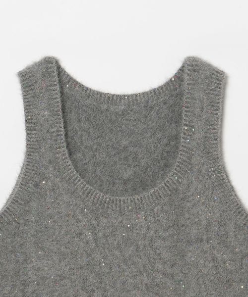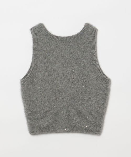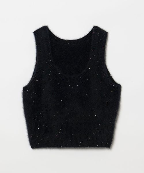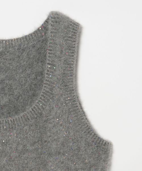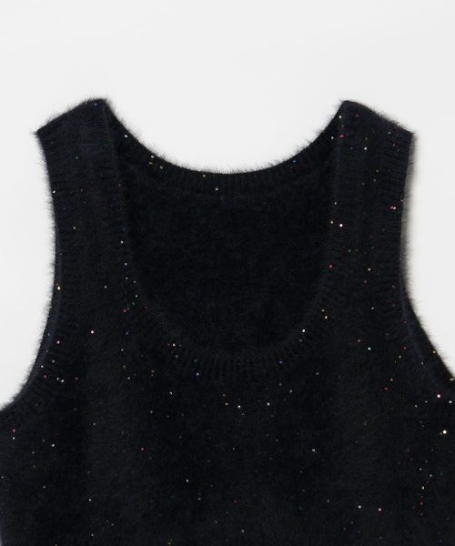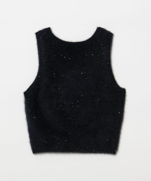 ふわふわの毛足感にキラキラとしたマルチカラーのスパンコールを合わせた特徴的な素材感を生かしたニットベスト。