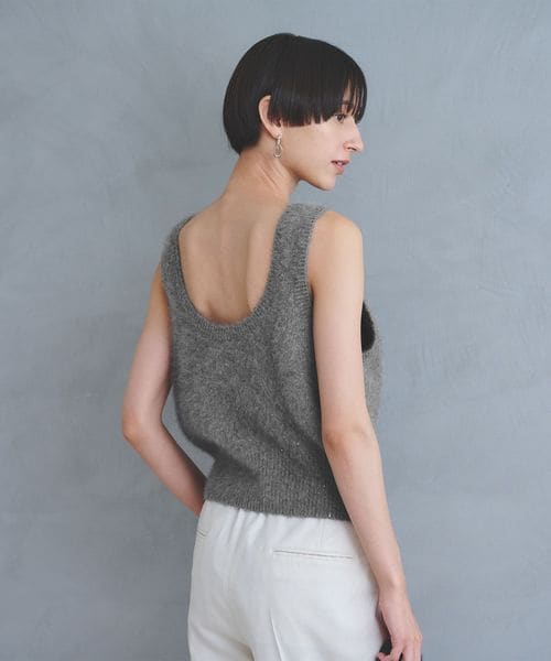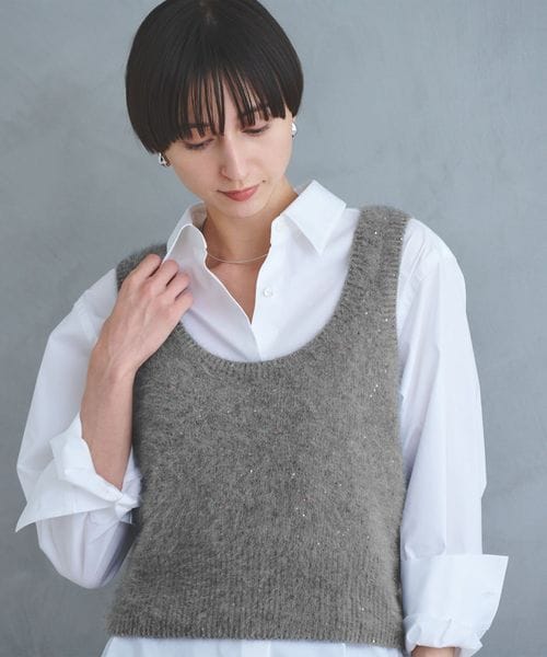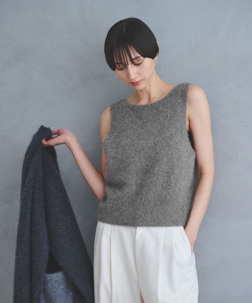 さりげないスパンコールのきらめきがアクセントになるニットベスト
