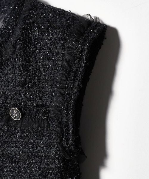 <VIVIANO>ツイードライク ノースリーブ ドレス