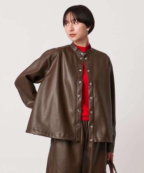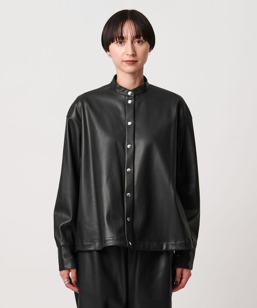 【別注】<CINOH>レザーライク シャツ ブルゾン