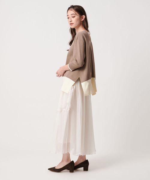 季節の移ろいを感じさせる、落ち着いた配色が魅力のニットトップス。