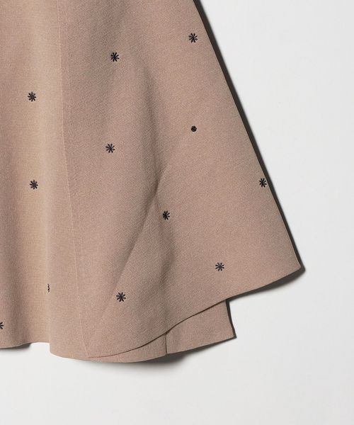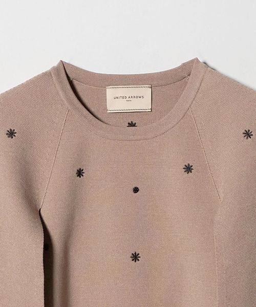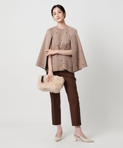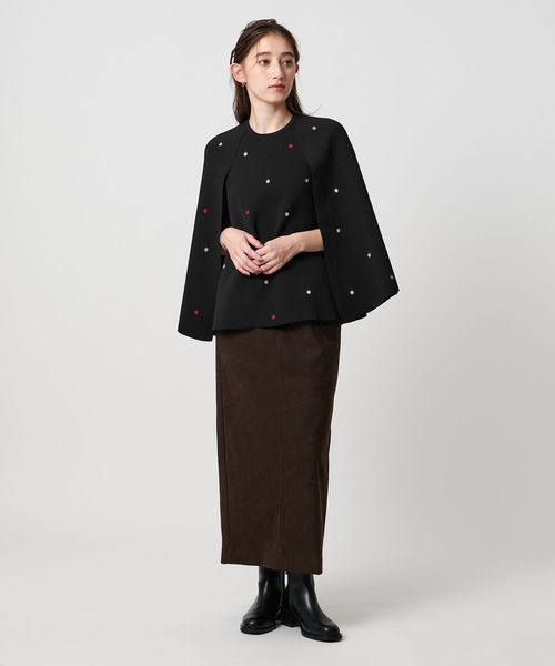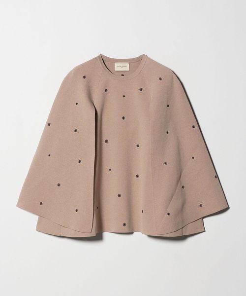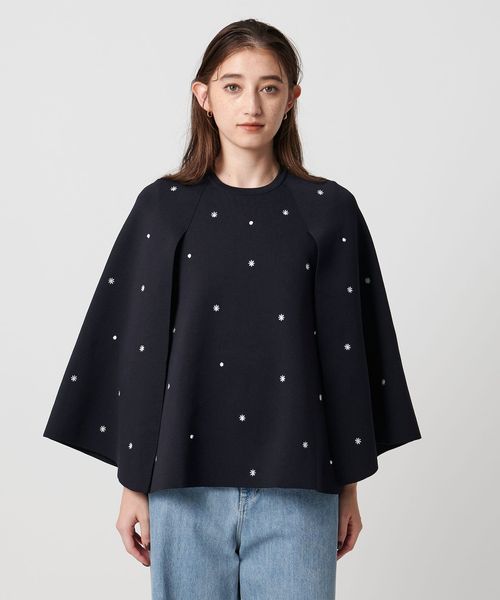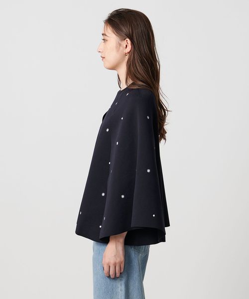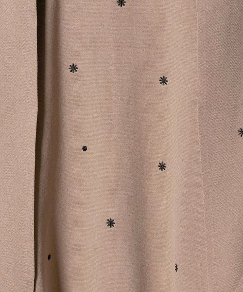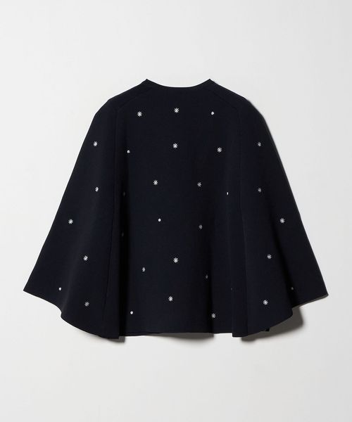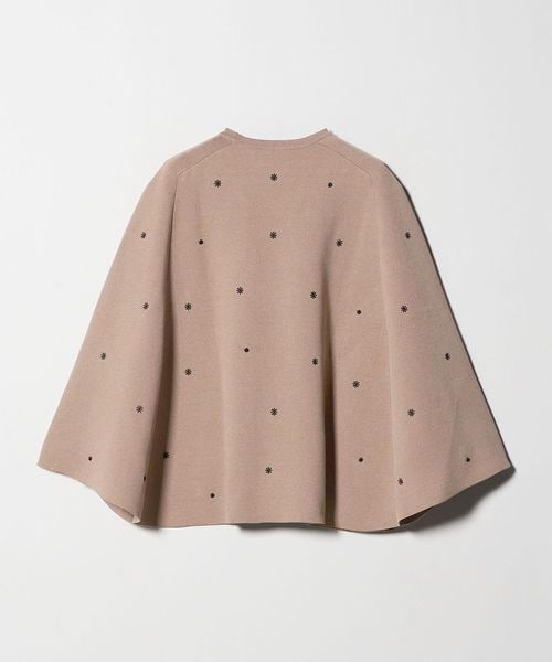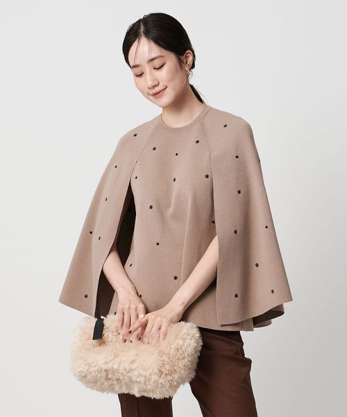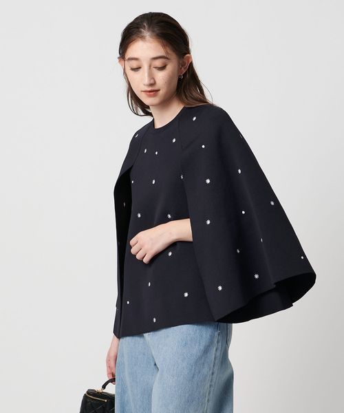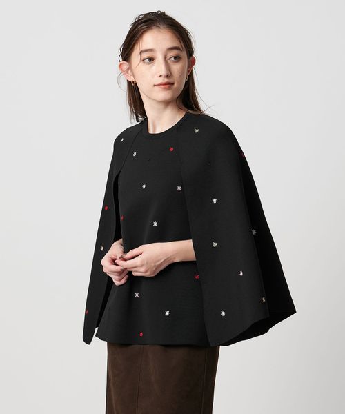 フラワー刺繍とビーズ付きドットを施した華やかな印象を演出するニットケープ。