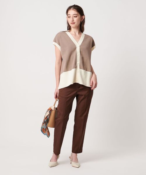 スッキリとしたシルエットの細身パンツや、Iラインスカートとも好相性です。