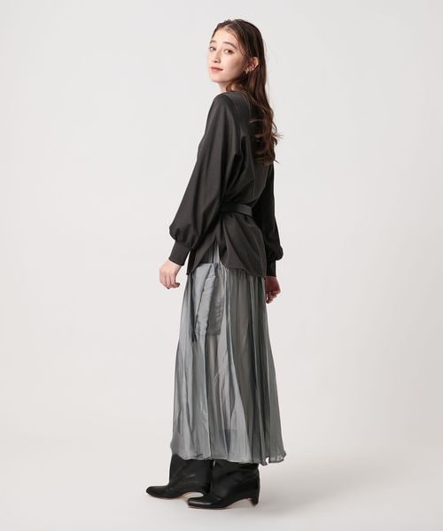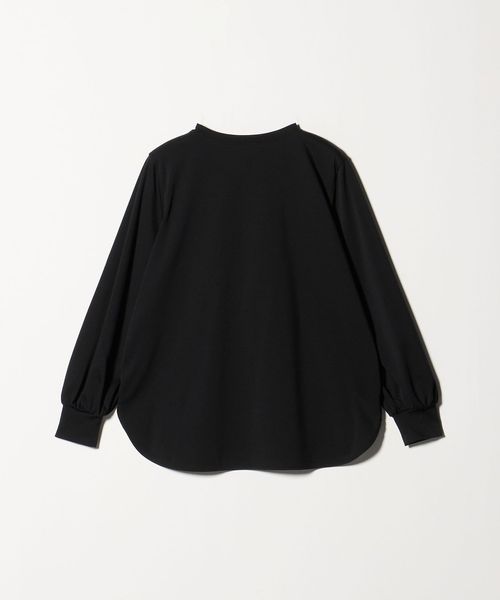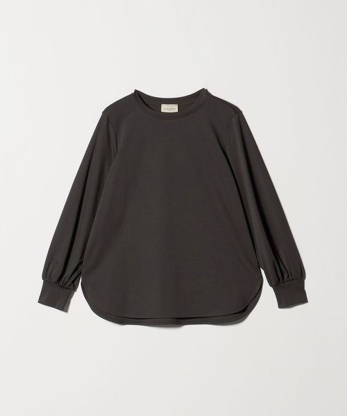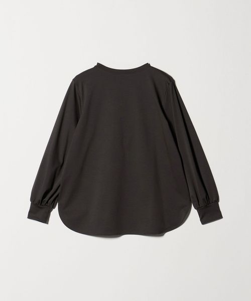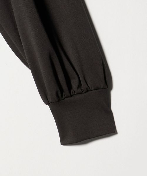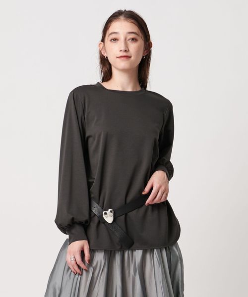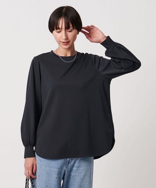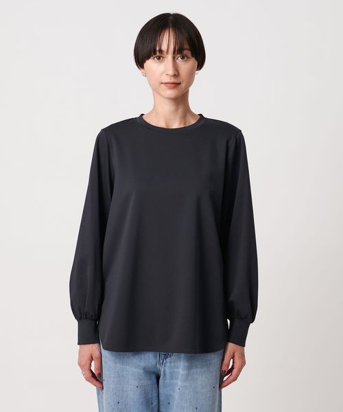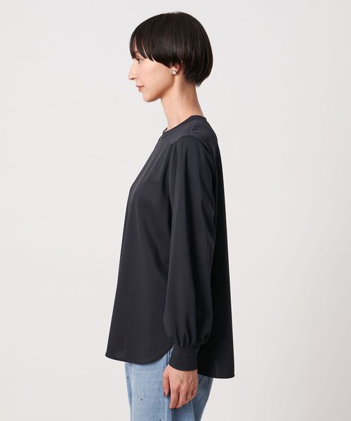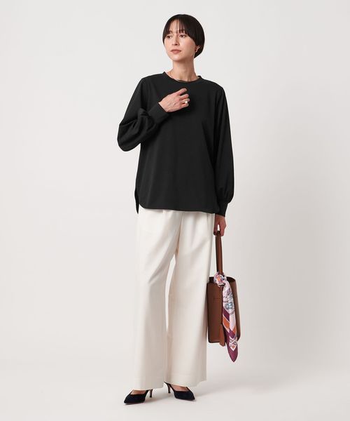 セットインで袖口にギャザーを入れたボリュームスリーブや、適度なネックの開きが女性らしい印象です。