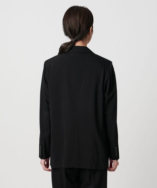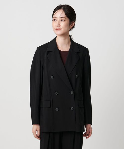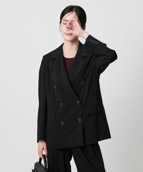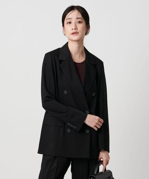 ダブルブレスト6つボタンのややメンズライクな印象のテーラードジャケット。