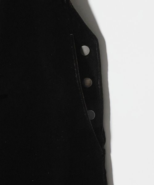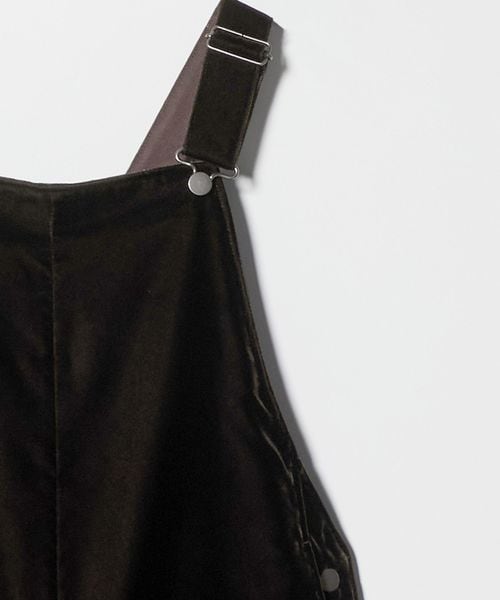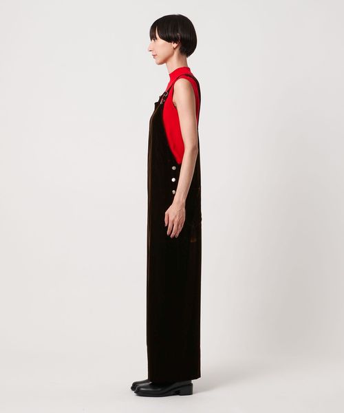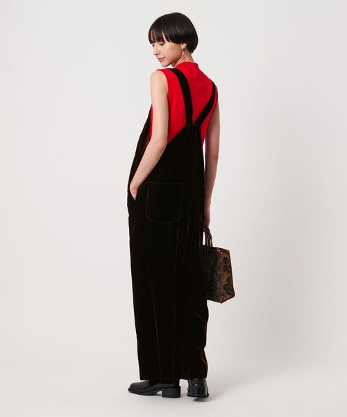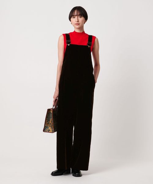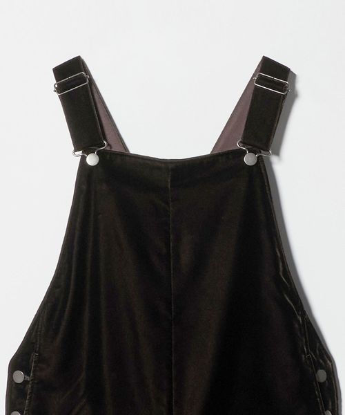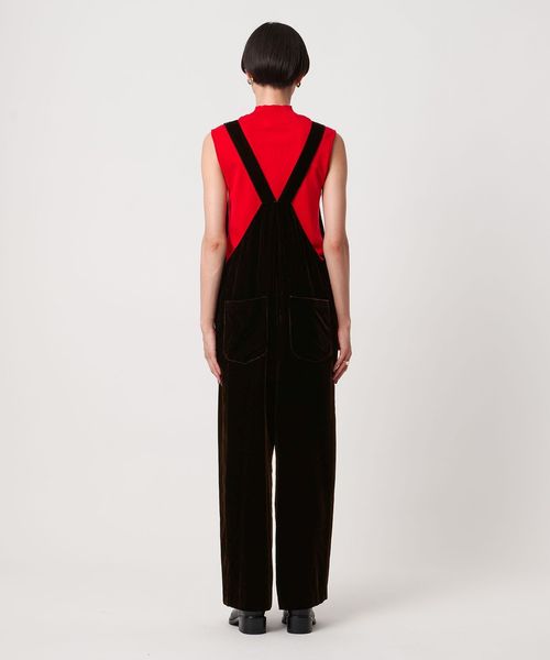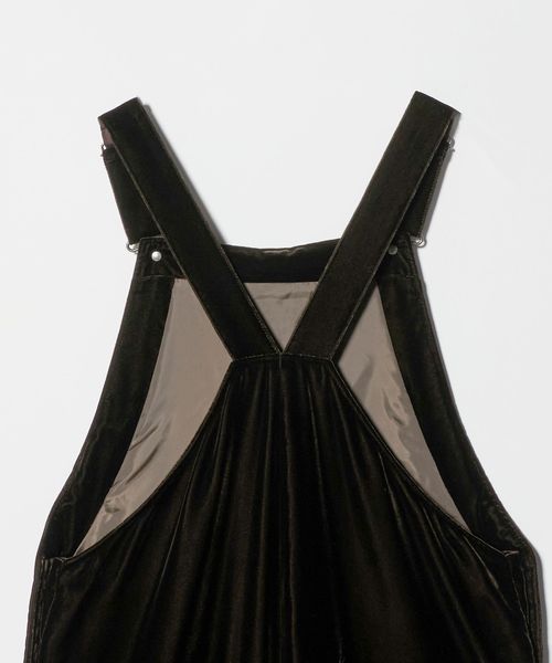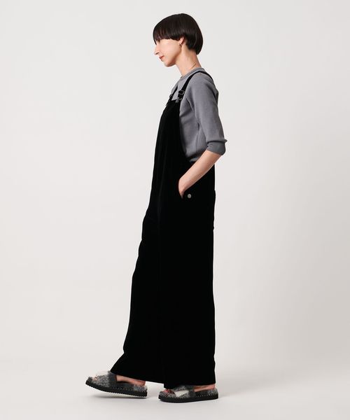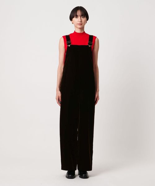 ベルベットの素材感を活かしたミニマルなデザインが魅力のサロペット。
