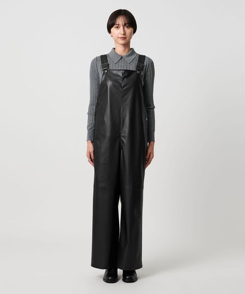 レザーライク サロペット パンツ‐ウォッシャブル‐