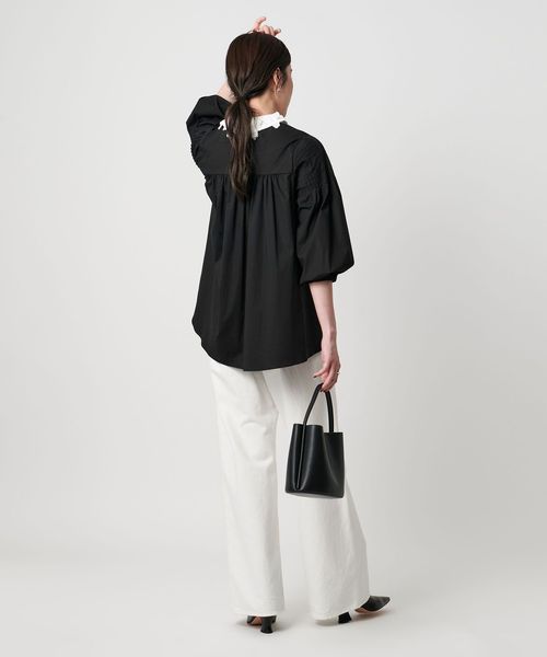 取り外すとバンドカラーのブラウスとしてもお召いただける2WAY仕様が嬉しいポイント。