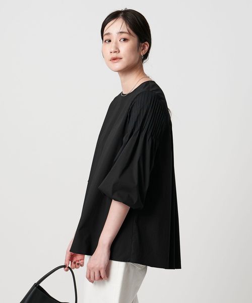 袖山のピンタックが、柔らかな立体感と女性らしい印象を引き立てるデザインです。
