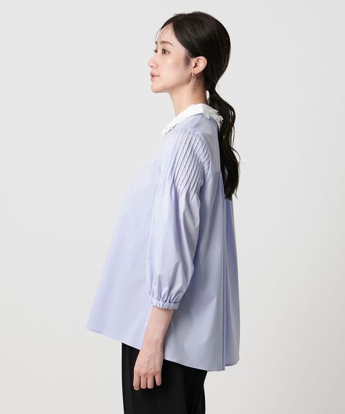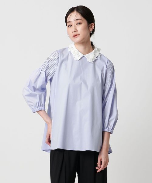 取り外し可能な3D花刺繍のつけ襟が華やかなブラウス。