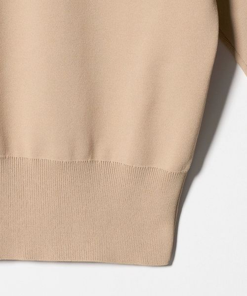 身頃は程よくゆとりのあるシルエットで、袖と裾にはリブが付いているので、着用時は着丈のバランスを調整していただけます。