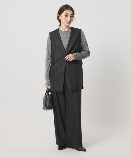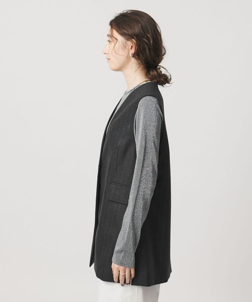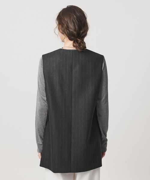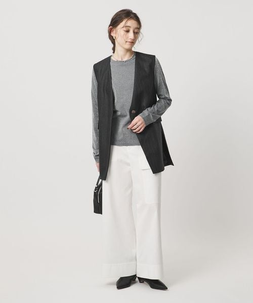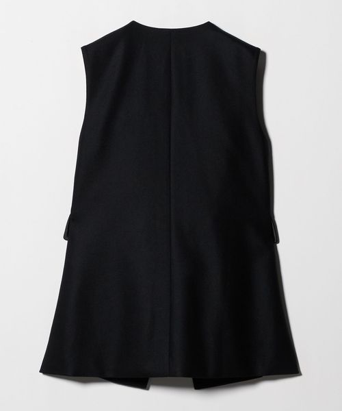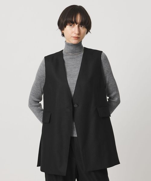 なめらかな光沢とゆとりのある縦長シルエットが洗練された印象のベスト。