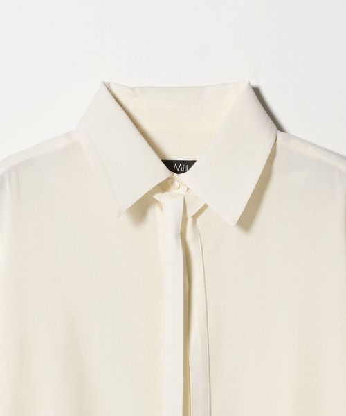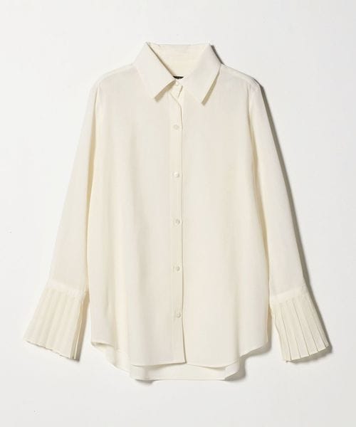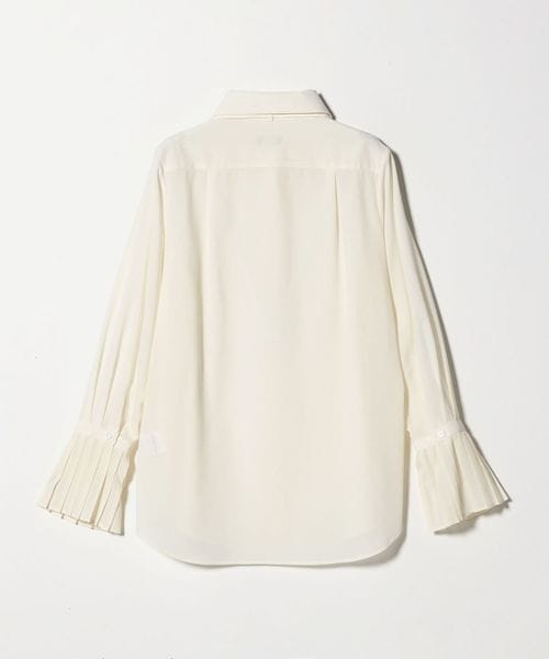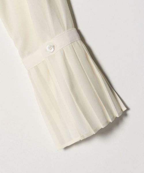 カフス部分のプリーツが特徴的なフェミニンな印象のボウタイブラウス。
