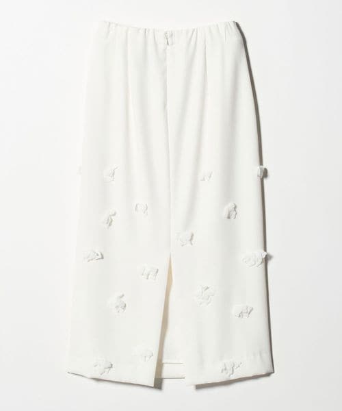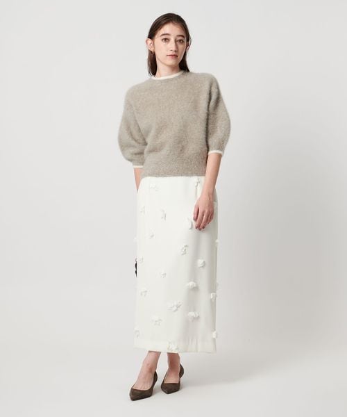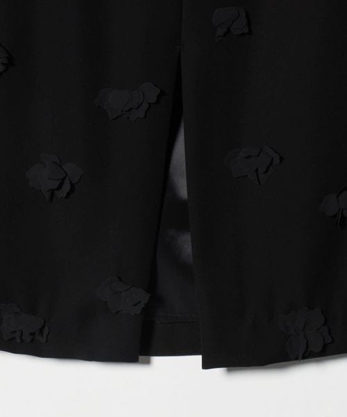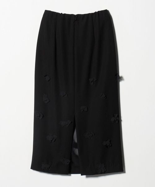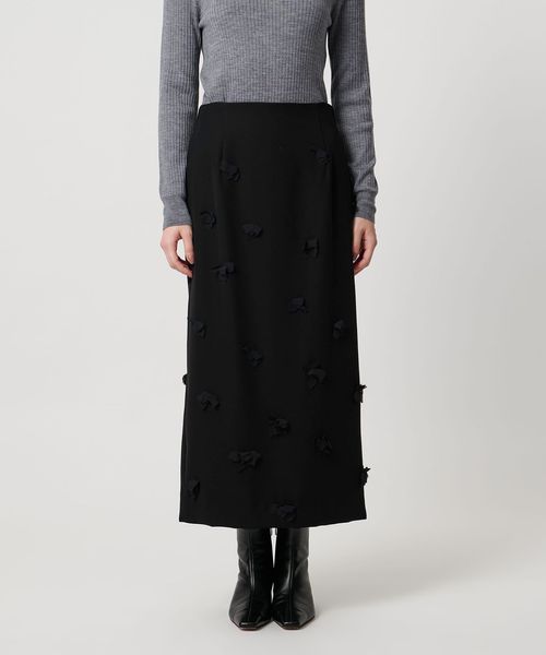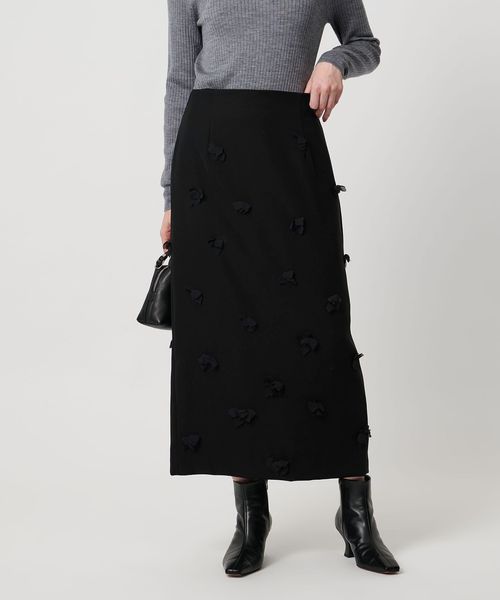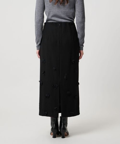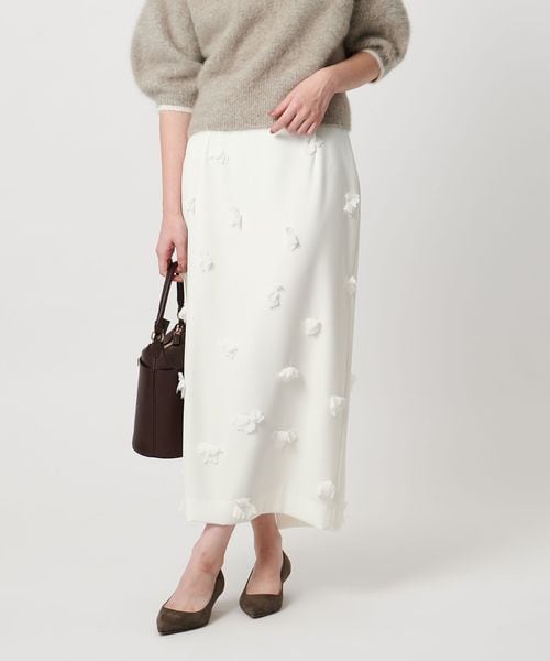 軽く柔らかい印象の立体的なフラワーモチーフが施されたタイトスカート。