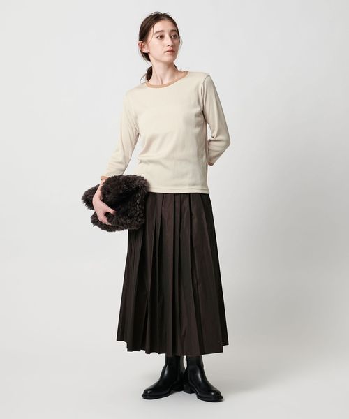 ジャケットのインナーやハイウエストのボトムにインをしても、もたつかず好相性です。