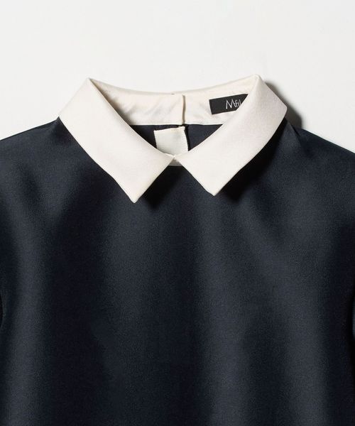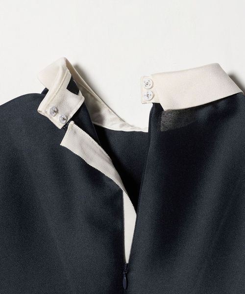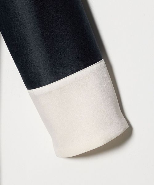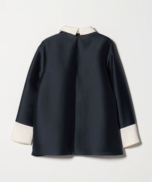 ハリ感のある素材とバイカラーデザインが映える、Aラインブラウス。