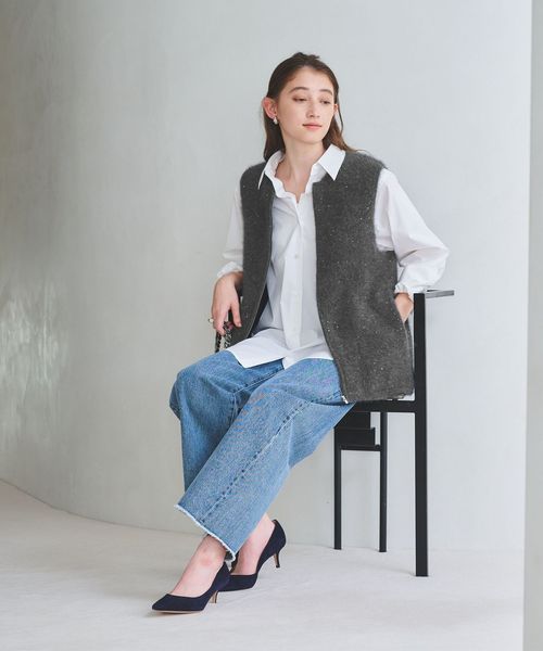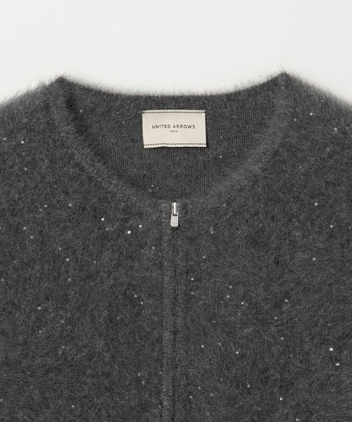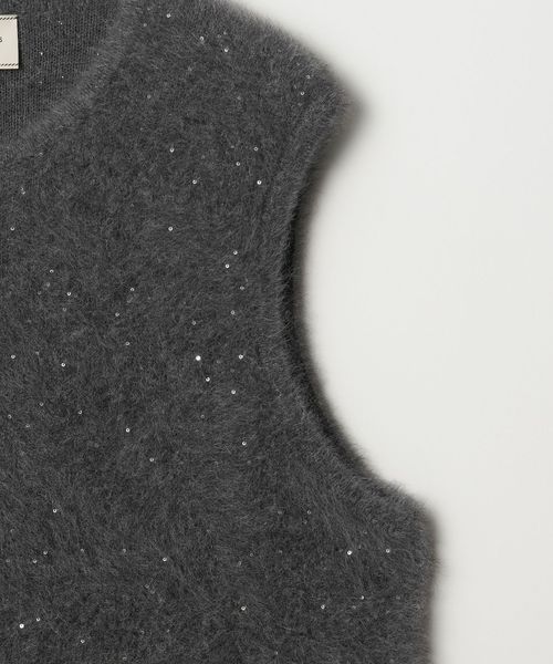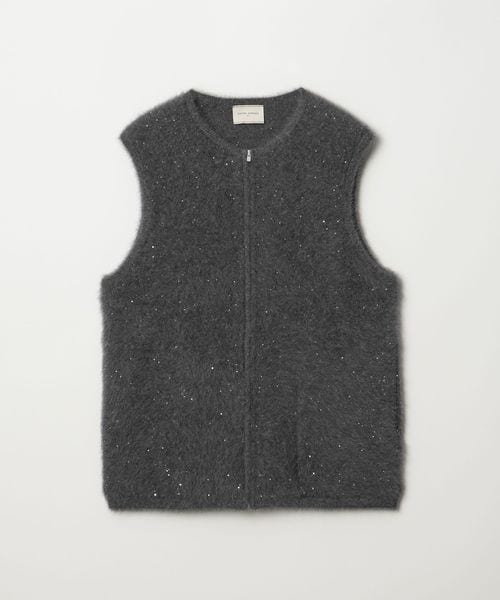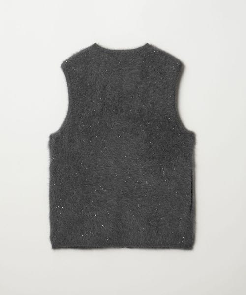 ふわふわとした毛足のある素材に極小スパンコールの華やかさを加えたニットジレ。