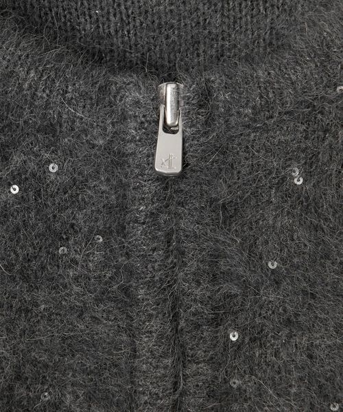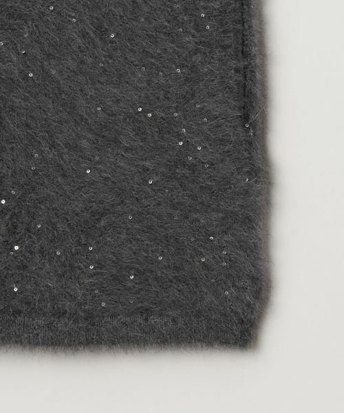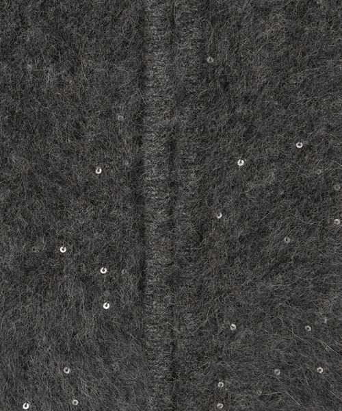 滑らかな手触りとふわりとした毛足感が特徴のフォックスカシミヤブレンド素材に、極小スパンコールを合わせた糸を表側に使用。