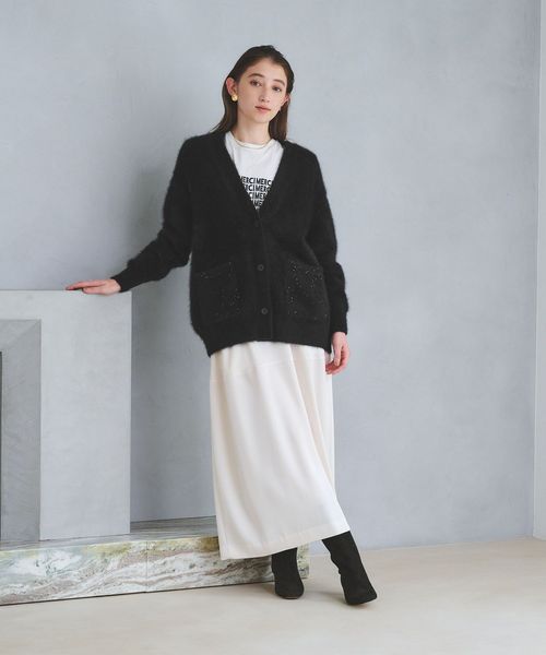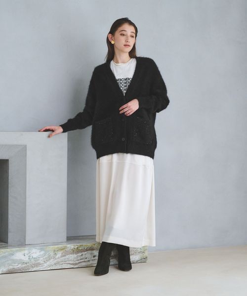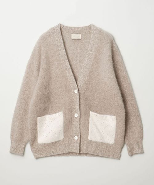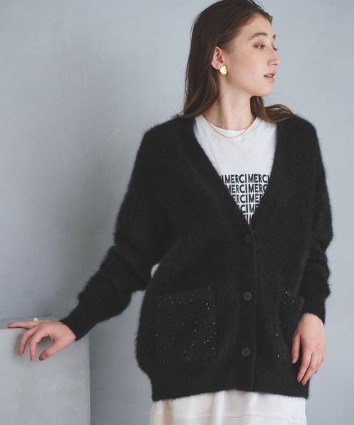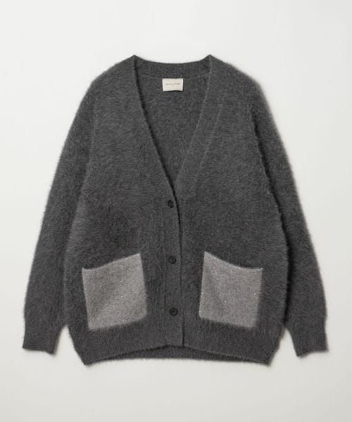 フォックスカシミヤ スパンコール ミドル カーディガン