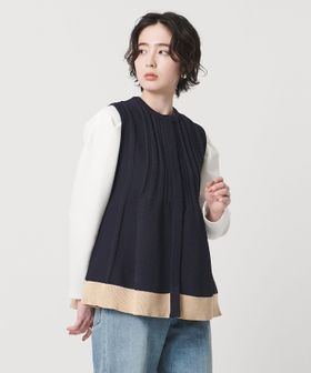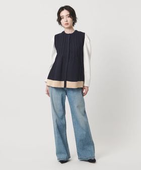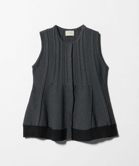 ケーブル ペプラム ノースリーブ ニット ベスト ‐ウォッシャブル‐