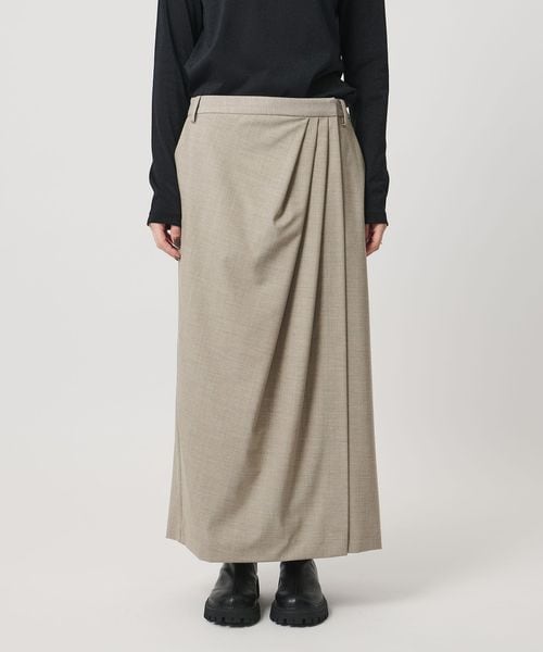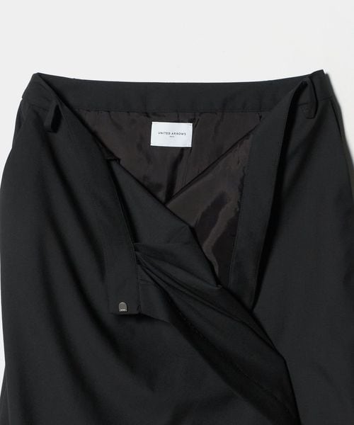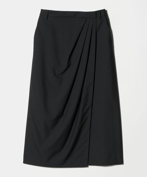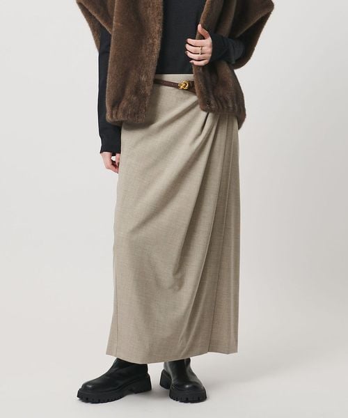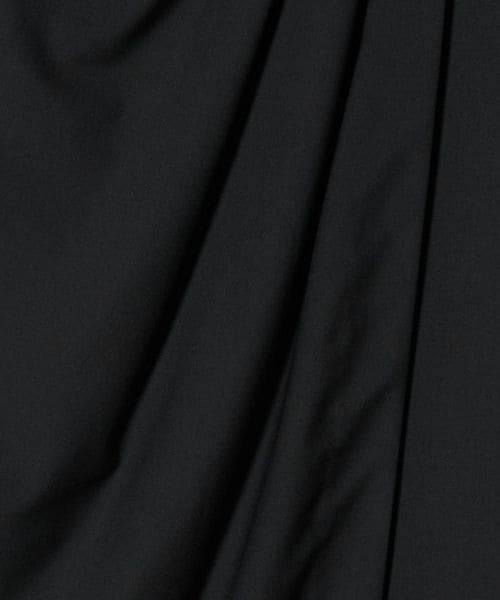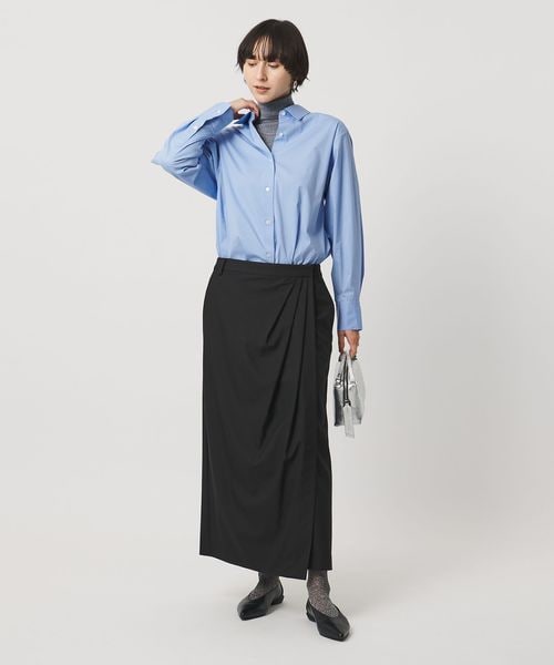 アシンメトリーなドレープがコーディネートのアクセントに。
