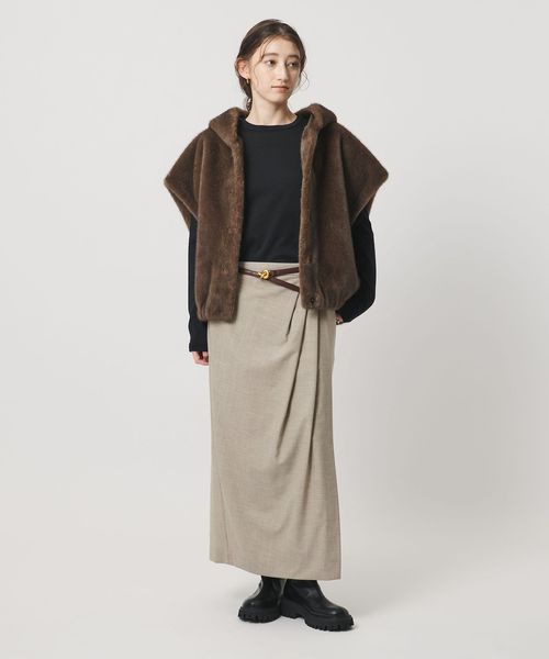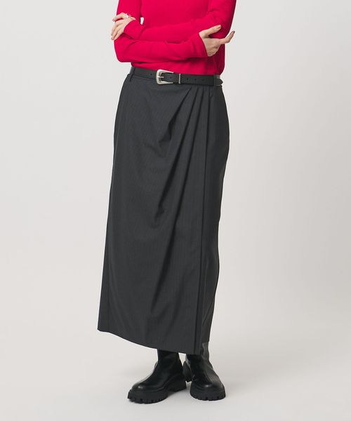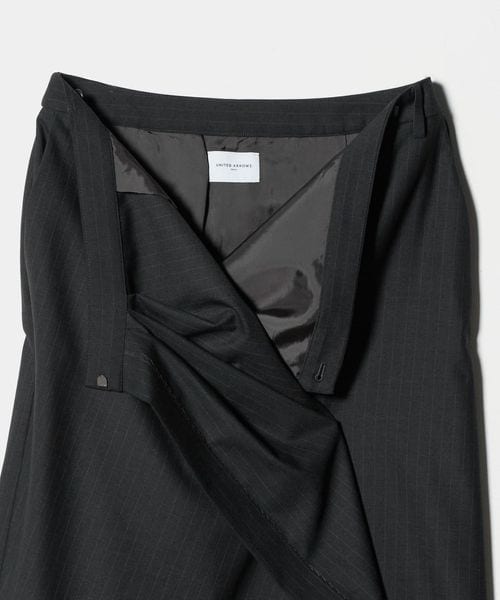 トレンドのスラックススカートを女性らしくアップデートした一着。