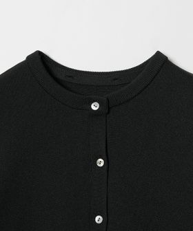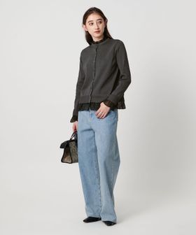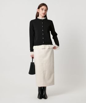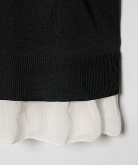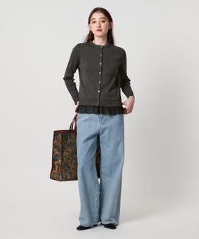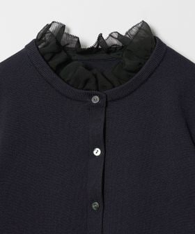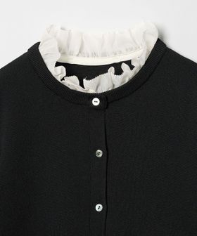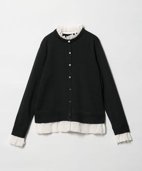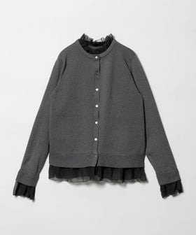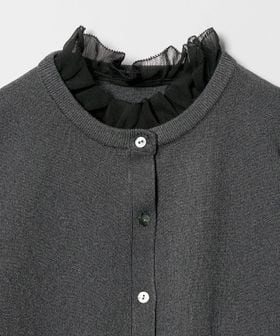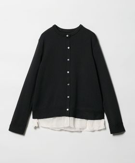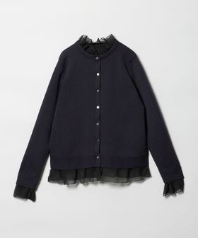 ちらりと覗く楊柳シフォンデが上品な印象のニットカーディガン。