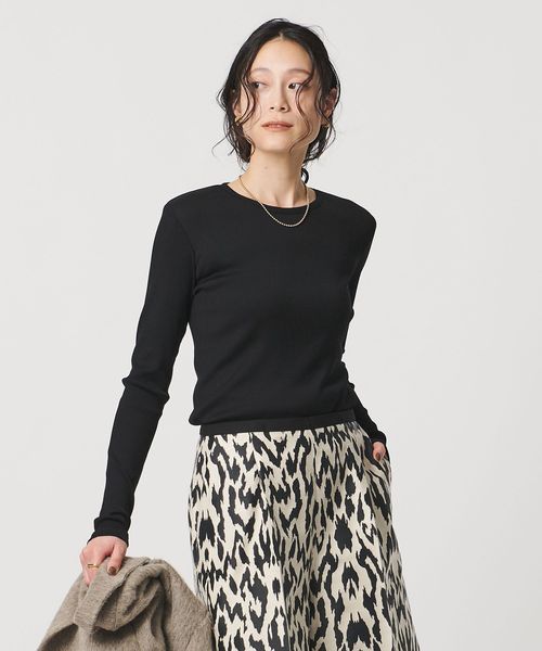 艶やかなジャージー素材が洗練された印象を演出するクルーネックニット。