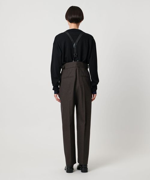 取り外し可能・長さ調節可能のサスペンダー付きでコーディネートの幅が広がります。